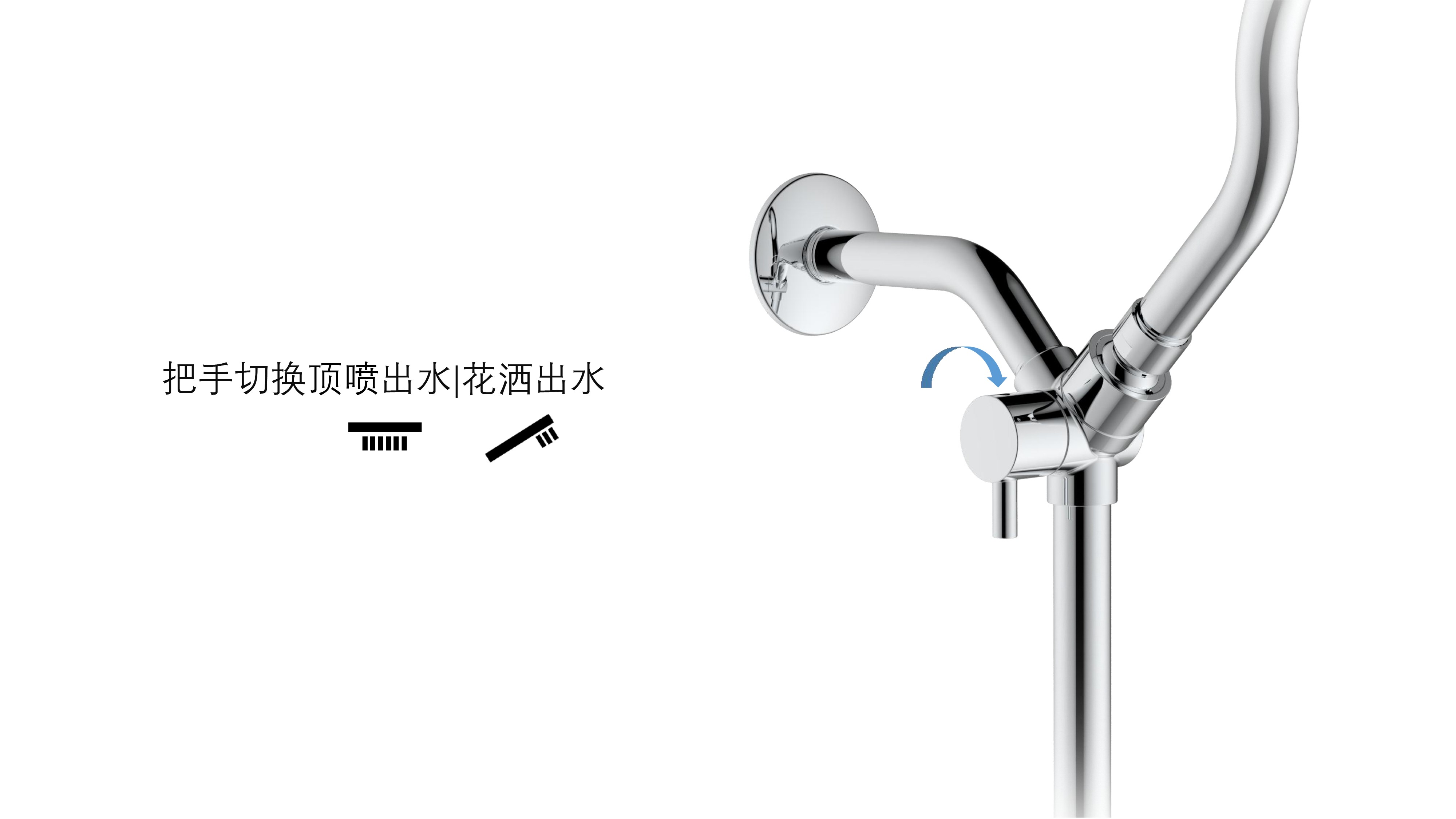 上出水彎管套裝;頂噴內(nèi)置球頭,可實現(xiàn)多角度旋轉(zhuǎn)調(diào)整;把手切換頂噴出水、花灑出水;轉(zhuǎn)動把手調(diào)節(jié)滑座高低