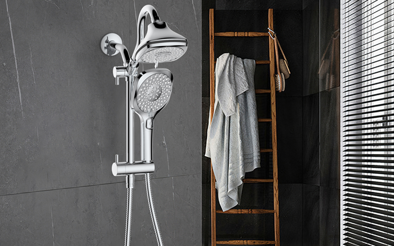 上出水彎管套裝;頂噴內(nèi)置球頭,可實(shí)現(xiàn)多角度旋轉(zhuǎn)調(diào)整;把手切換頂噴出水、花灑出水;轉(zhuǎn)動(dòng)把手調(diào)節(jié)滑座高低;8功能出水花灑